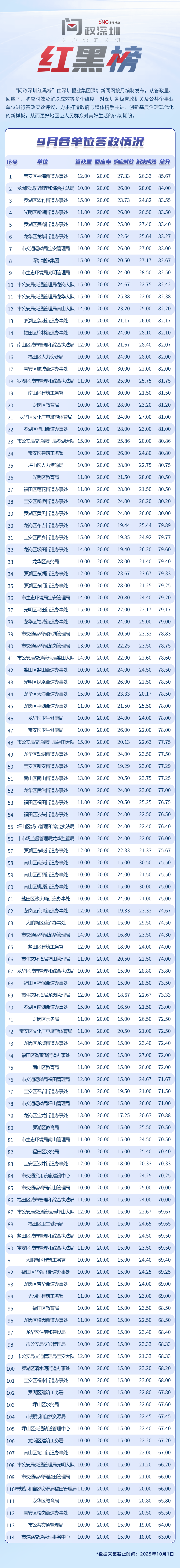 “問政深圳紅黑榜”具有科學(xué)、合理、完備的綜合評(píng)價(jià)體系,能夠綜合評(píng)估深圳各級(jí)黨政機(jī)關(guān)和公共企事業(yè)單位的答政情況。