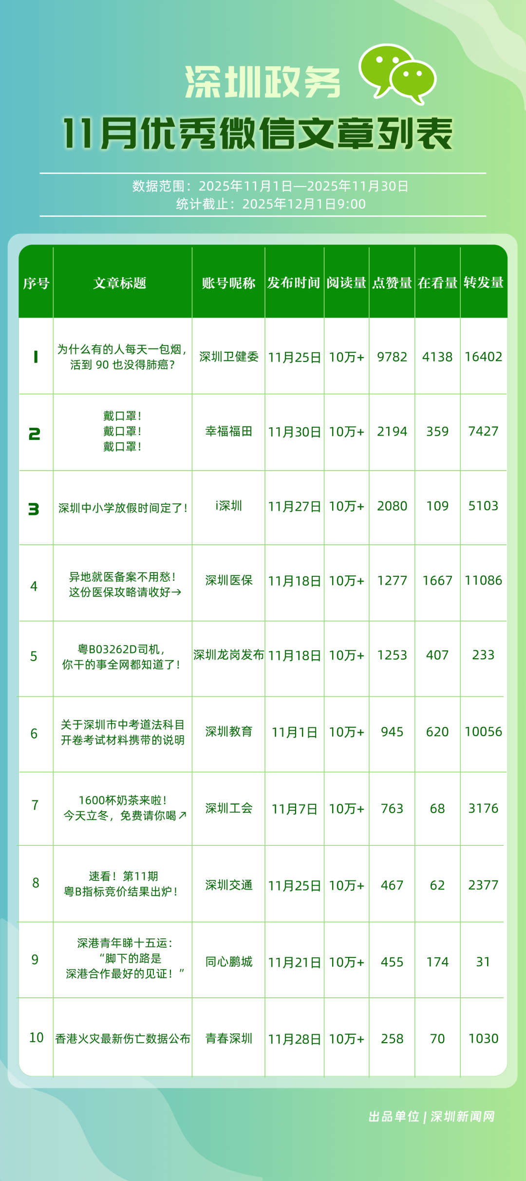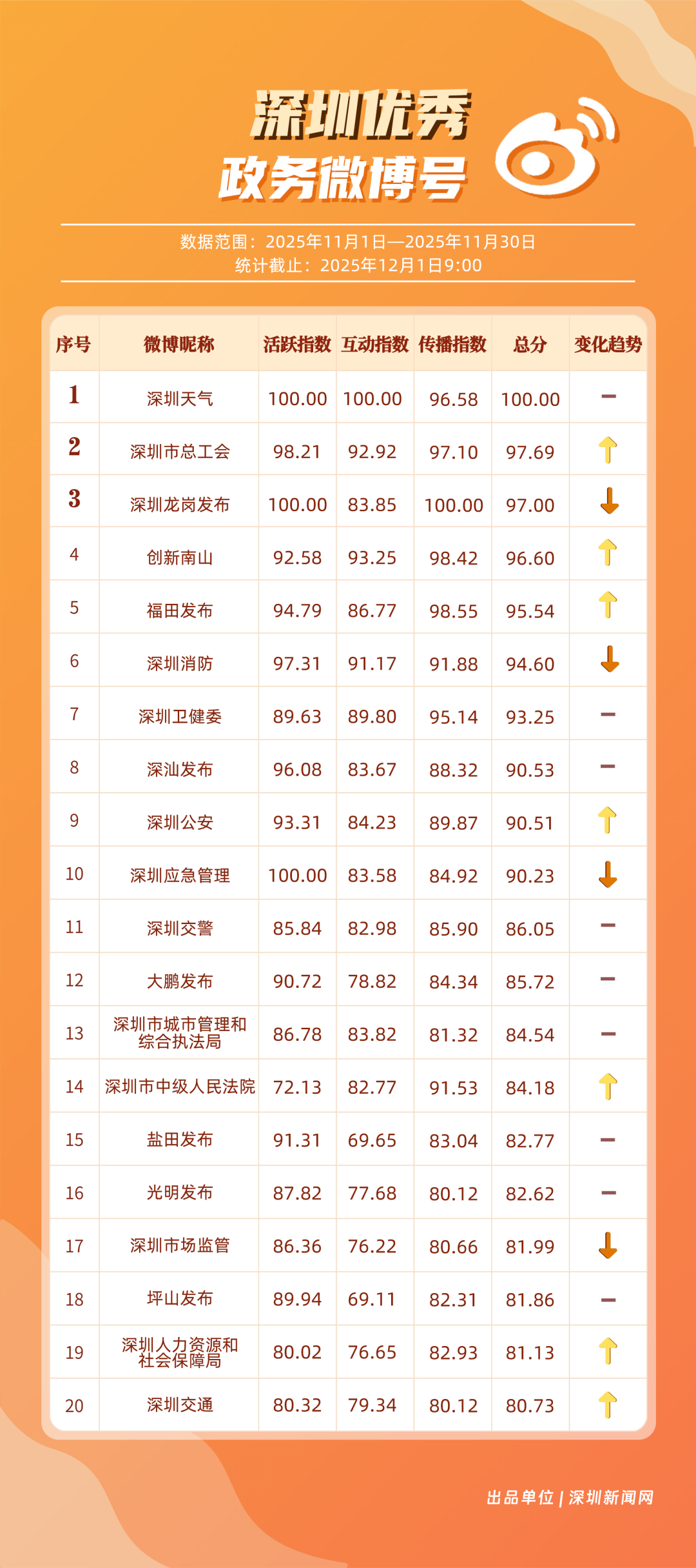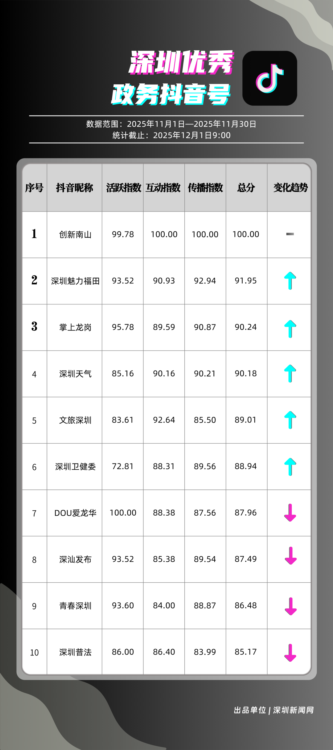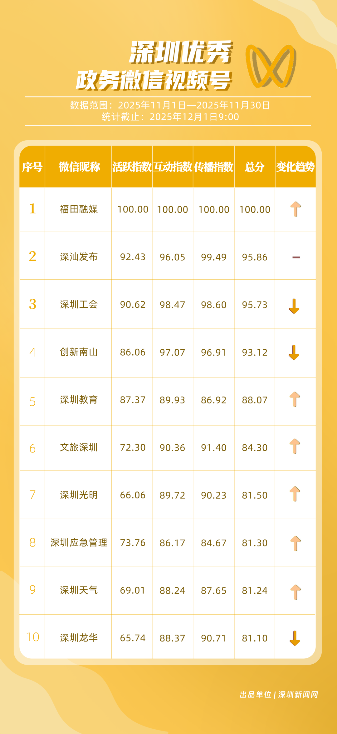 這個矩陣躍居榜首!11月“深圳優(yōu)秀政務新媒體矩陣”榜單出爐