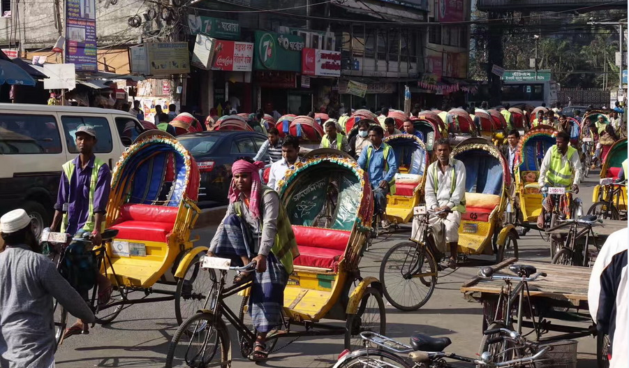 實拍世界三輪車之都達卡 浩浩蕩蕩車流構(gòu)成奇特街景