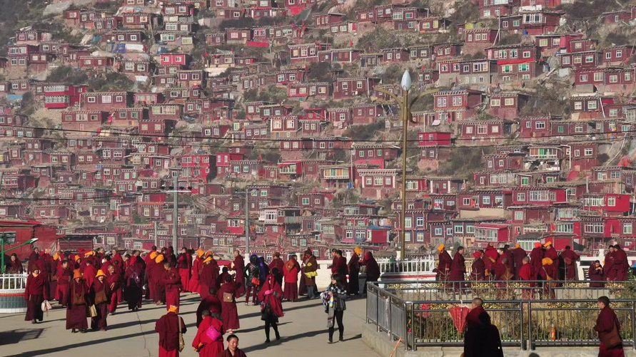 震撼!世界最大佛學院建在海拔4000米的山谷 密密麻麻的僧舍連綿數(shù)公里