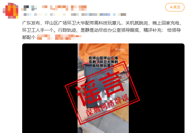 2026-02-15深圳一地給環(huán)衛(wèi)工人戴定位工牌?最新回應(yīng):假的!